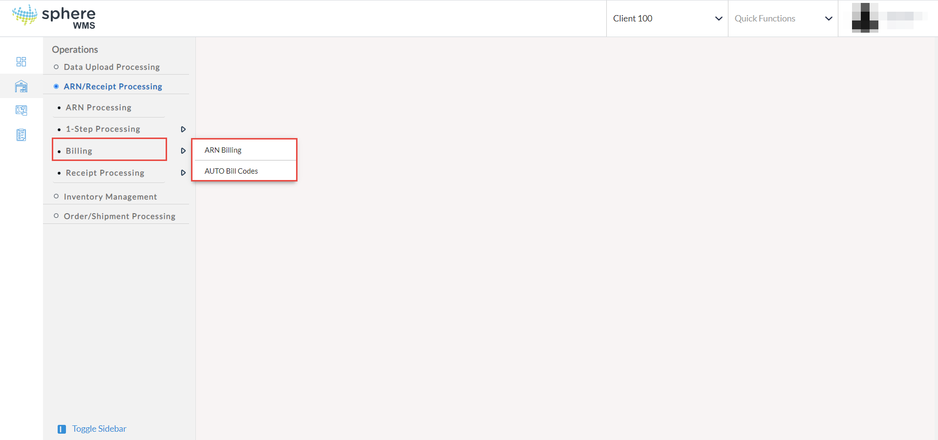 1.Navigate to Operations > ARN/Receipt Processing > Billing.