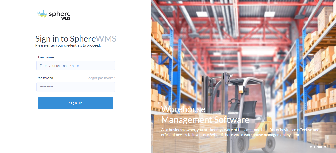 You will be logged into the SphereWMS application.