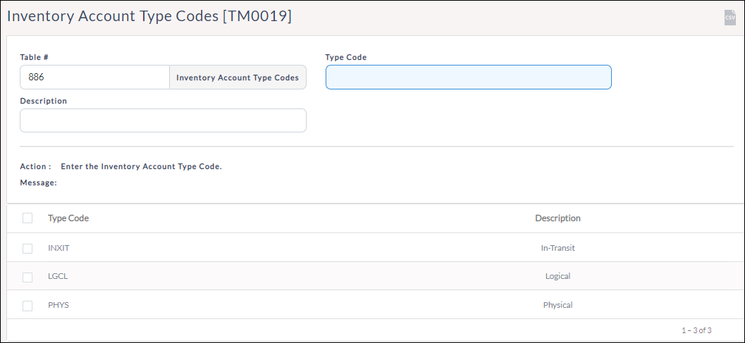 1. Navigate to Account Management > Table Maintenance > Global Tables > Inventory Account Type Codes.