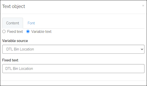 10. In the Content tab, select the type of text, Variable Source/Fixed text.