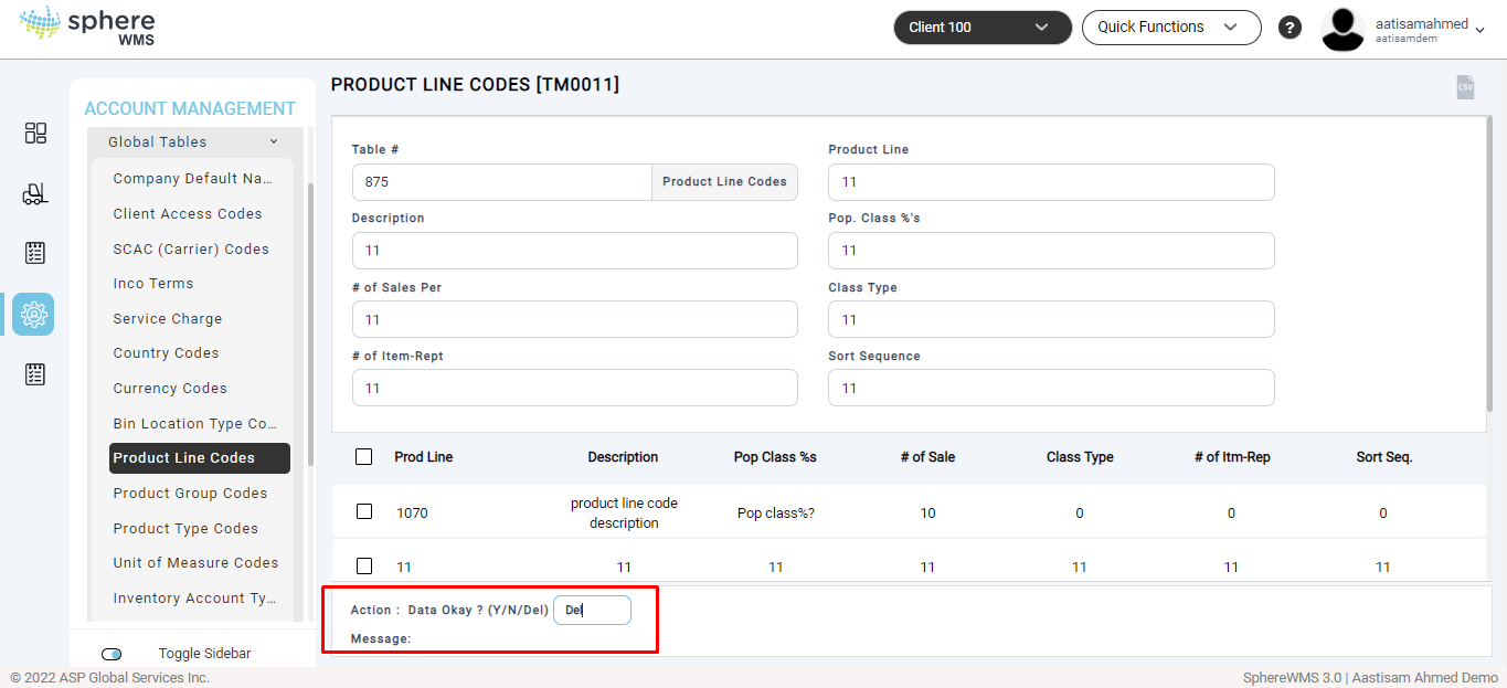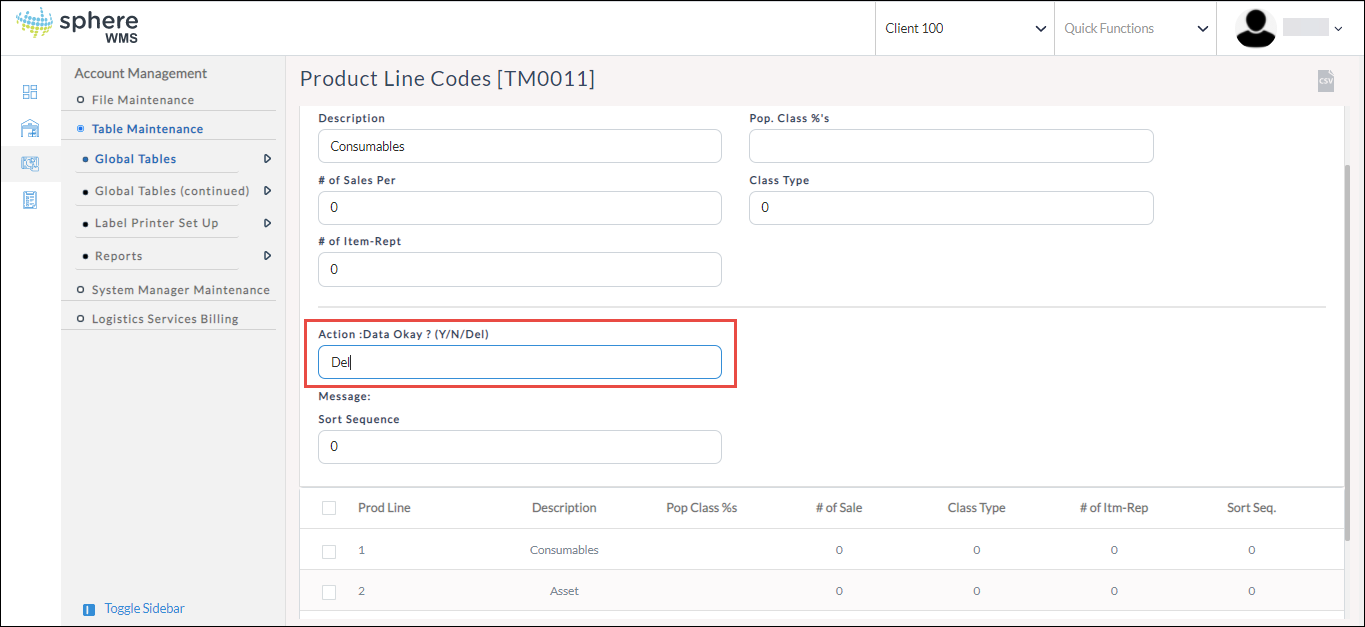 1. Navigate to Account Management > Table Maintenance > Global Tables > Product Line Codes.