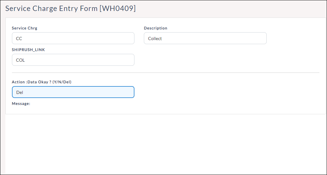 6. To delete a service charge, enter the Service Chrg which you want to delete or select one from the look-up table.