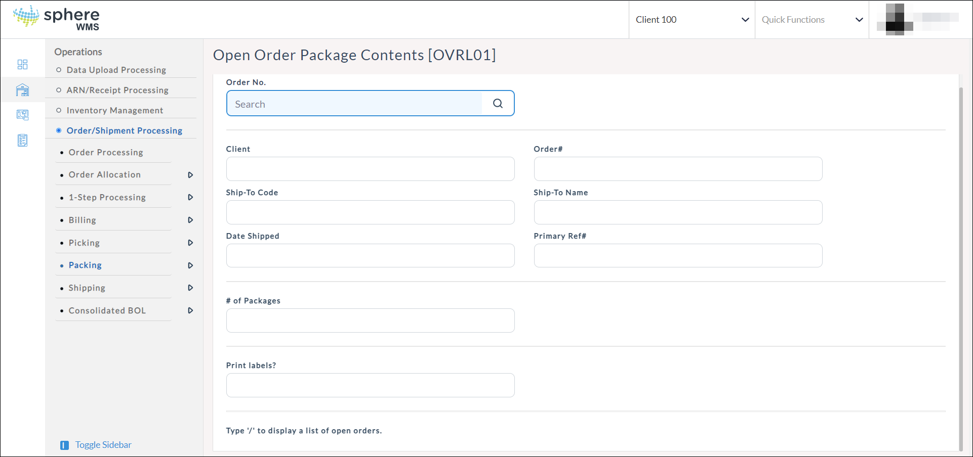 1. Navigate to Operations > Order/Shipment Processing > Packing > Package Contents Lbl.